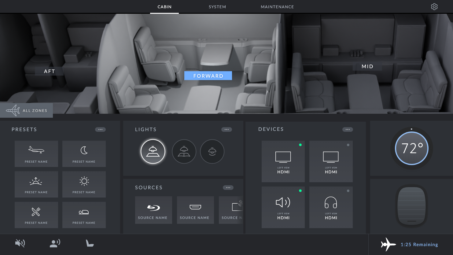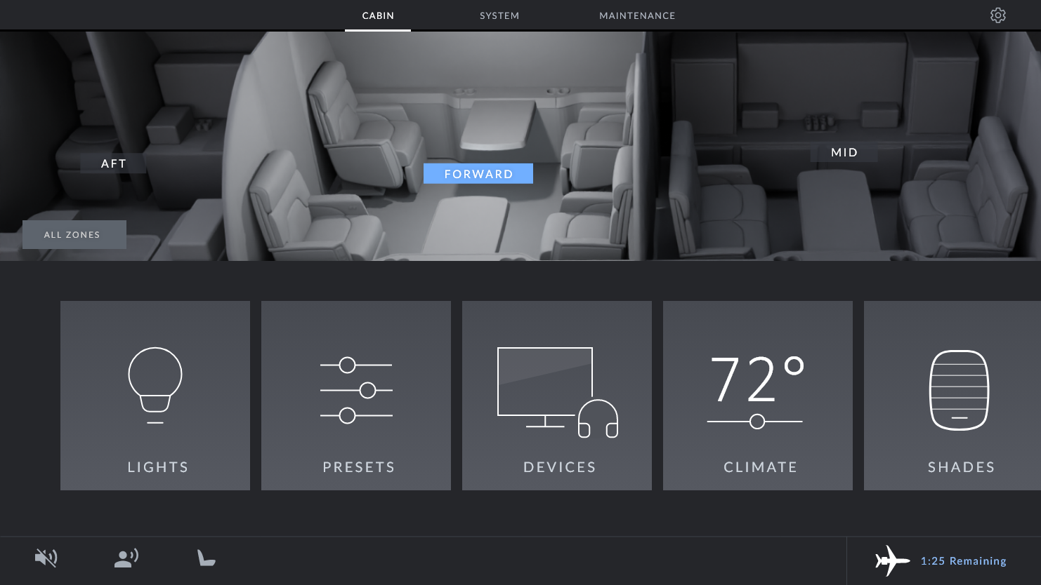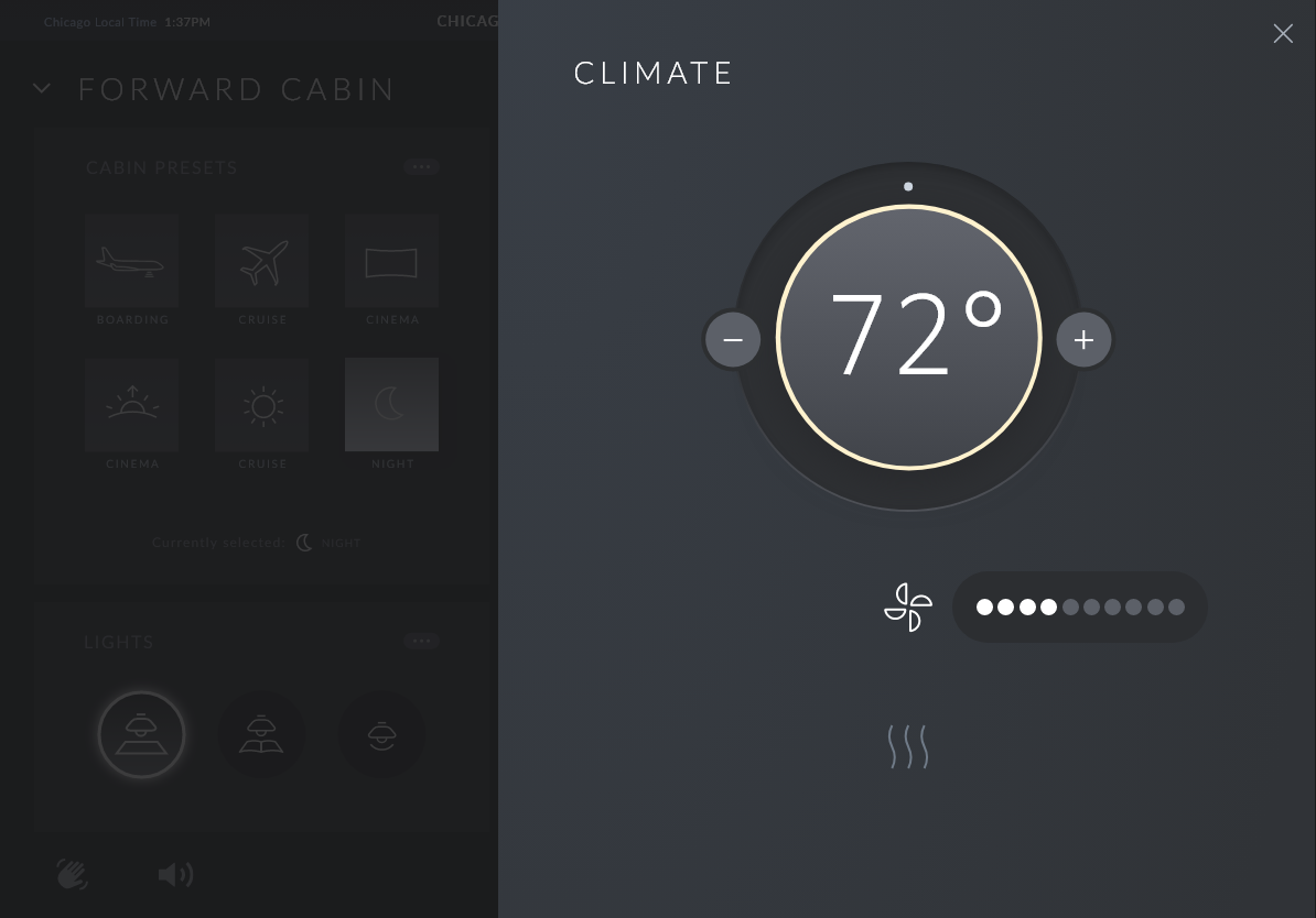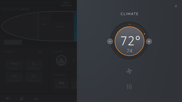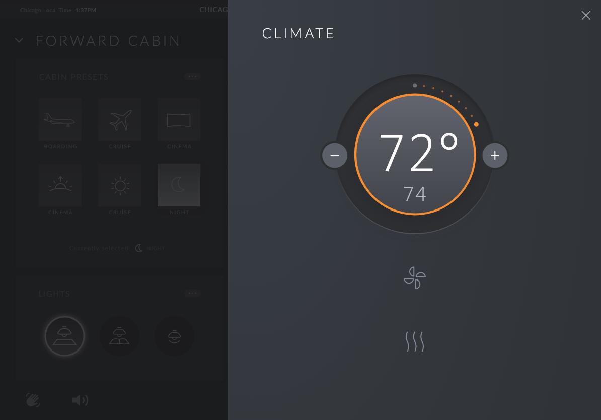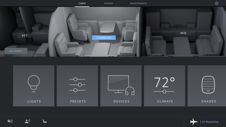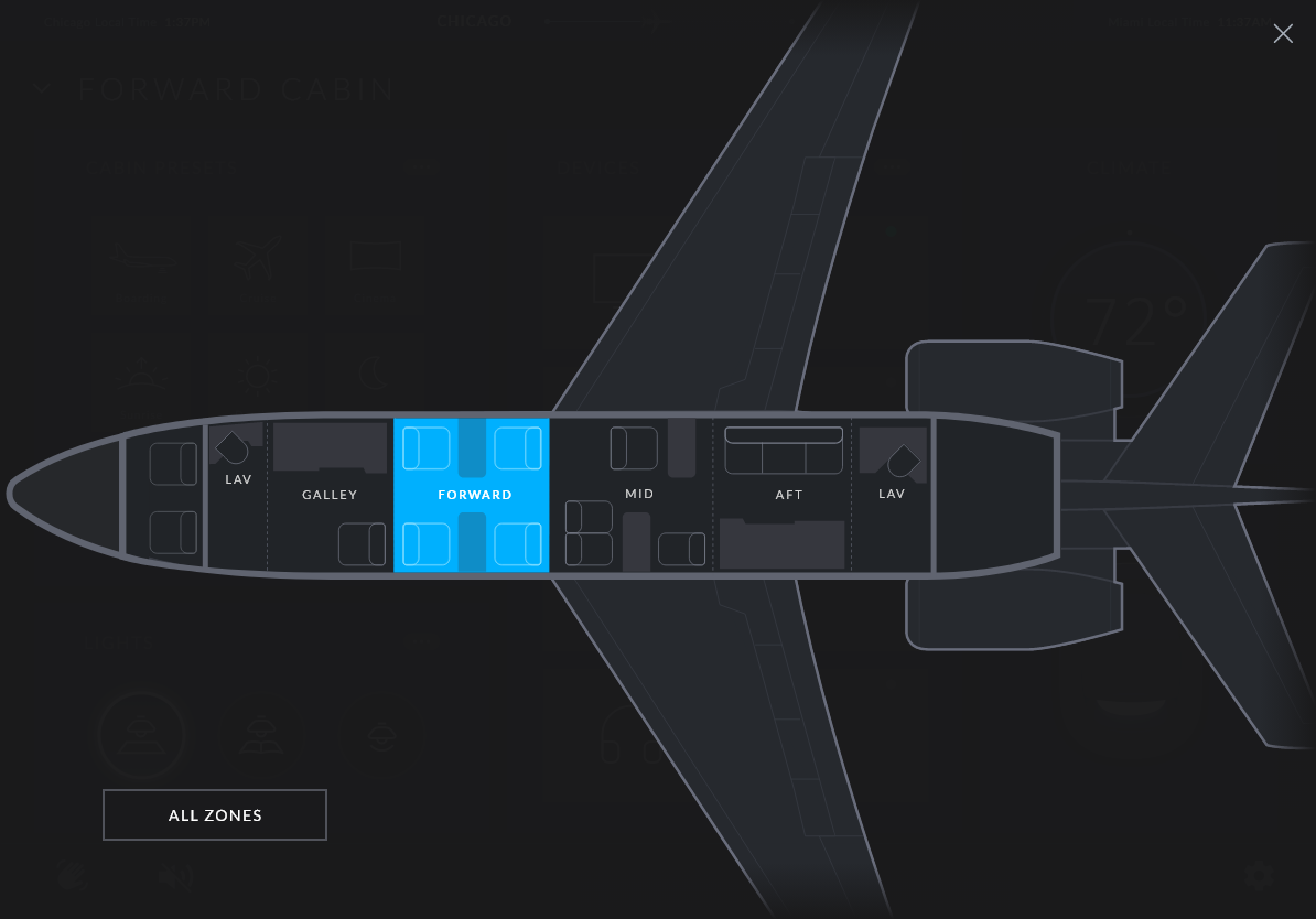 This app allows crew members to manage the entire aircraft, VIPs to manage the cabin and standard passengers to manage their seats.